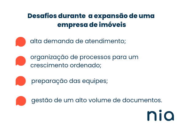 Uma empresa de imóveis em expansão possivelmente também terá mais processos e pessoas envolvidas em diversas etapas.